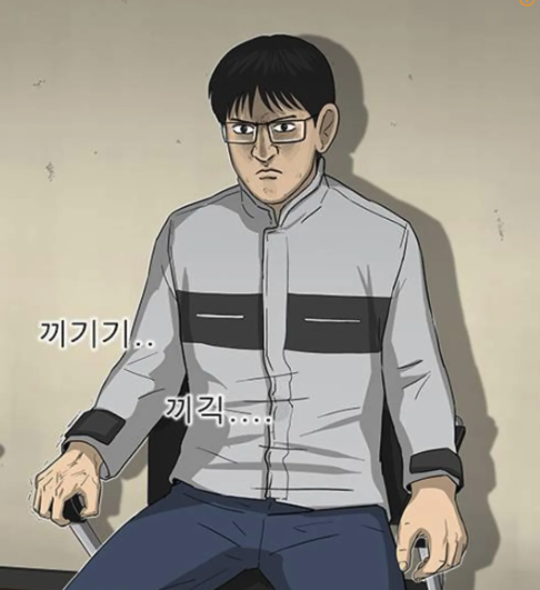 강훈의 집도 자영업(슈퍼마켓)을 합니다. 강훈의 아버지는 이재만(김성균)은 알람까지 맞춰 놓고 아들의 귀가를 기다립니다. 가게 앞 평상, 재만이 앉은 자리만 빛이 바랬을 정도입니다. 어딘가 모자라 보이는 재만, 그러나 분리수거를 위해 캔을 다루는 모습 역시 예사롭지 않습니다. 강훈의 괴력이 어디서 온 것인지 알 수 있습니다. 이들 부자에 대한 이야기는 드라마 '무빙'에서 아직 제대로 나오지 않았습니다.