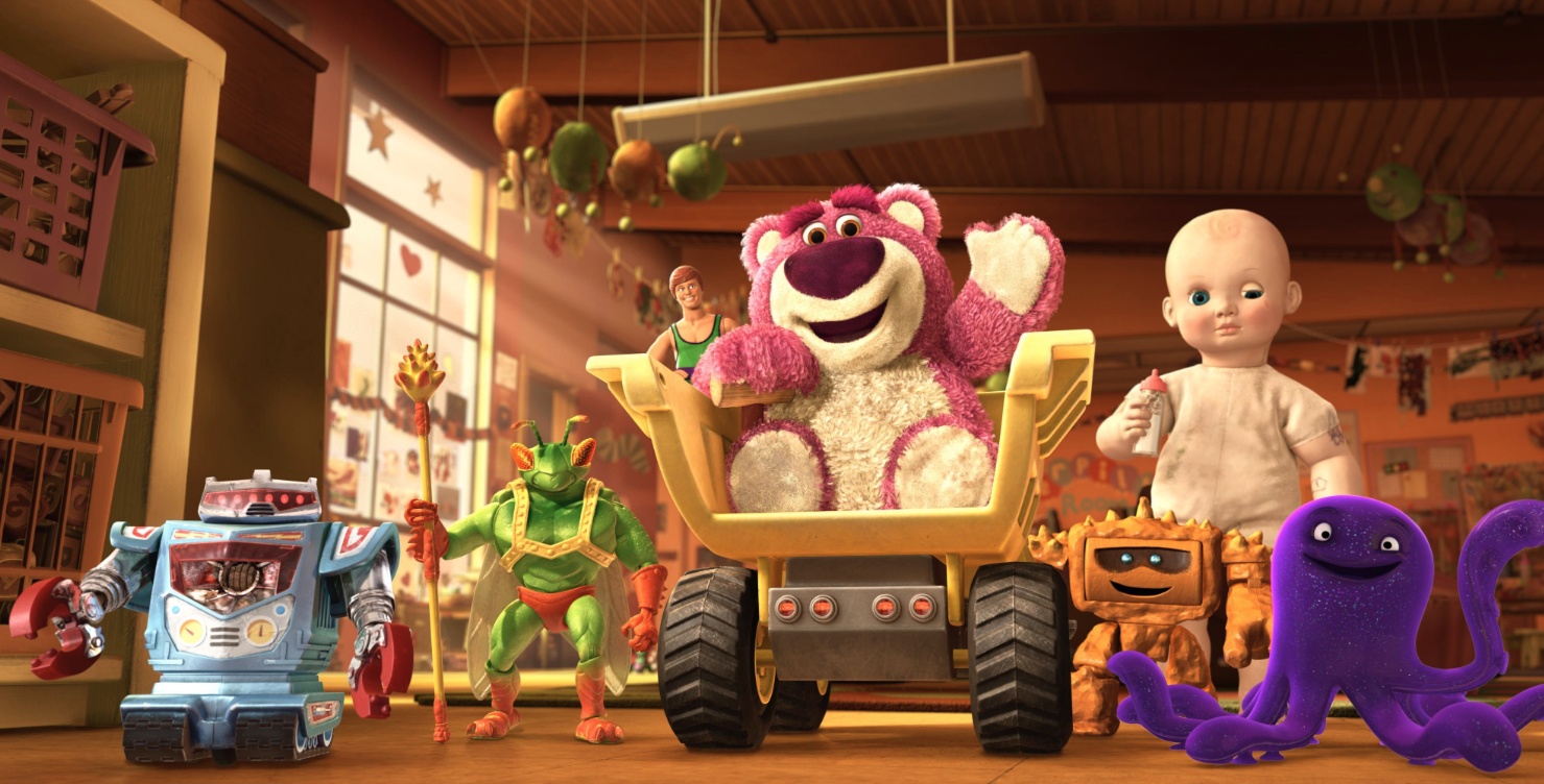 탁아소의 첫인상은 매우 좋습니다. 탁아소 장난감들을 대표하는 곰인형 '라쏘'도 앤디의 장난감들을 환대합니다. 이곳에서는 '버림 받을 일'이 없다는 것입니다. 앤디와 멀어지며 한동안 '장난감' 다운 놀이를 하지 못했던 장난감들에겐 탁아소가 천국일 것만 같습니다.