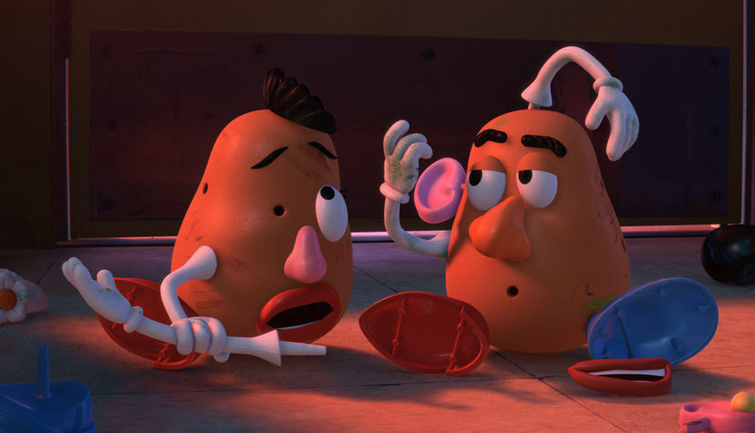 토이 스토리는 액션 블록버스터 같은 프롤로그로 시작합니다. 제시, 버즈, 우디가 악당 포테이토 부부를 추격합니다. 기차가 나오고 다리가 폭발하며 우주선이 난입합니다. 이 모든 것은 앤디가 장난감을 가지고 펼치는 상상의 놀이 속입니다. 그 시절 누구나 한번쯤 했을 법한 순간들을 아주 흥미진진하게 뛰어난 완성도로 보여주며 '토이 스토리'의 멋진 귀환을 알리는 아주 좋은 시작입니다.