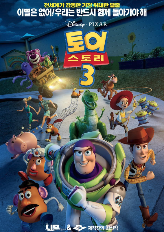 디즈니 플러스에서 볼 수 있는 명작 영화 토이 스토리3 아시지요? 2010년 2편 이후 11년만에 개봉, 그해 전세계에서 10.63억달러(약 1조 4,642억원)의 수익 올리며 전 세계 박스오피스 1위를 차지했는데요. 이번 포스팅에서는 디즈니 플러스에서 다시 보기 좋은 명작 '토이 스토리3' 의 명장면 셋을 소개하고 '토이 스토리3' 간단 리뷰해보겠습니다. 여러분도 '토이 스토리3'와 다시 보며 행복한 시간 떠올리시기 바랍니다.