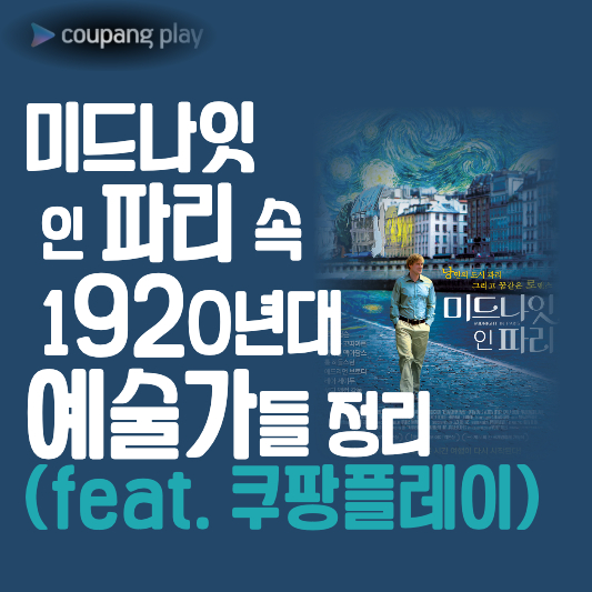 2011년에 개봉한 영화 '미드나잇 인 파리' 주인공 '길'은 1920년대 파리를 예술의 황금기라고 여기며 동경합니다. 급기야 올드카를 타고 1920년대로 가게된 길은 동경하던 1920년대 예술가들과 어울리기도 하는데요. 이번 포스팅에서는 쿠팡플레이에서 바로 감상할 수 있는 '미드나잇 인 파리' 속 1920년대 예술가들을 정리해드리겠습니다. 영화를 보기 전이라도 미리 알고 보면 영화를 더욱 재밌게 즐기실 수 있습니다.