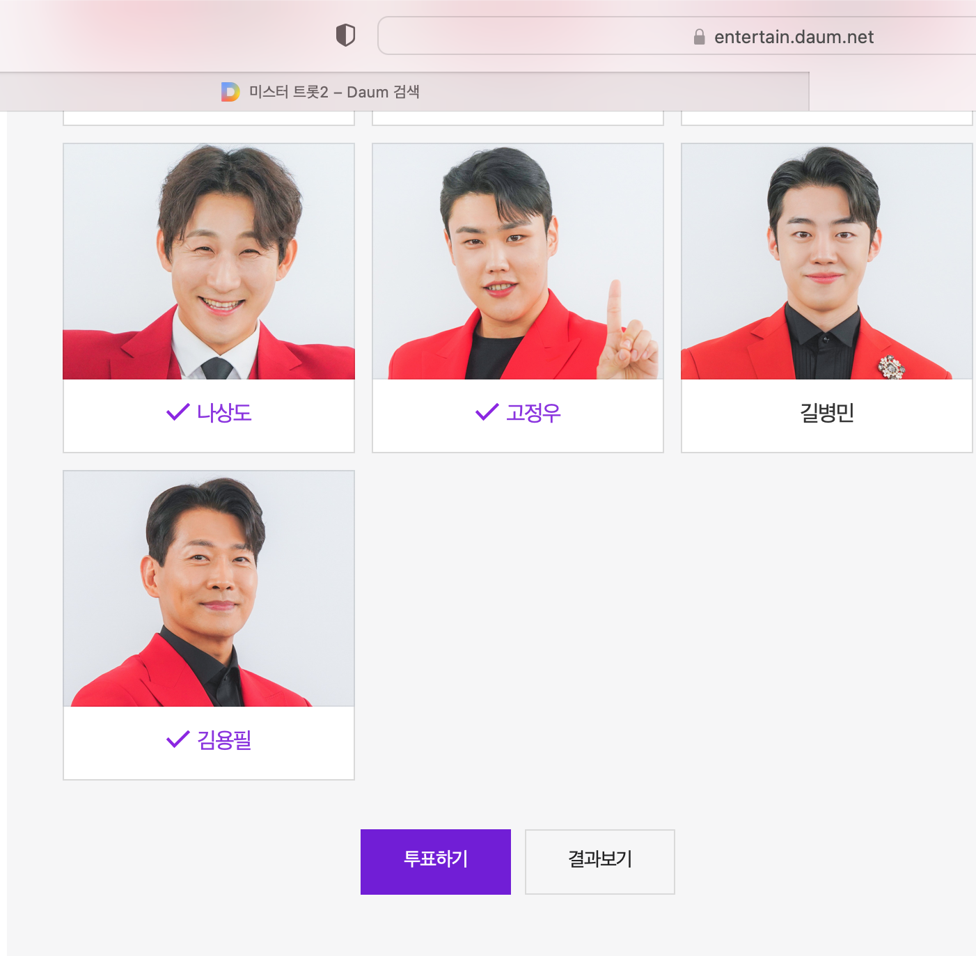 위 네이비색의 배너를 클릭하시면 다음과 같은 투표 화면으로 이동합니다.