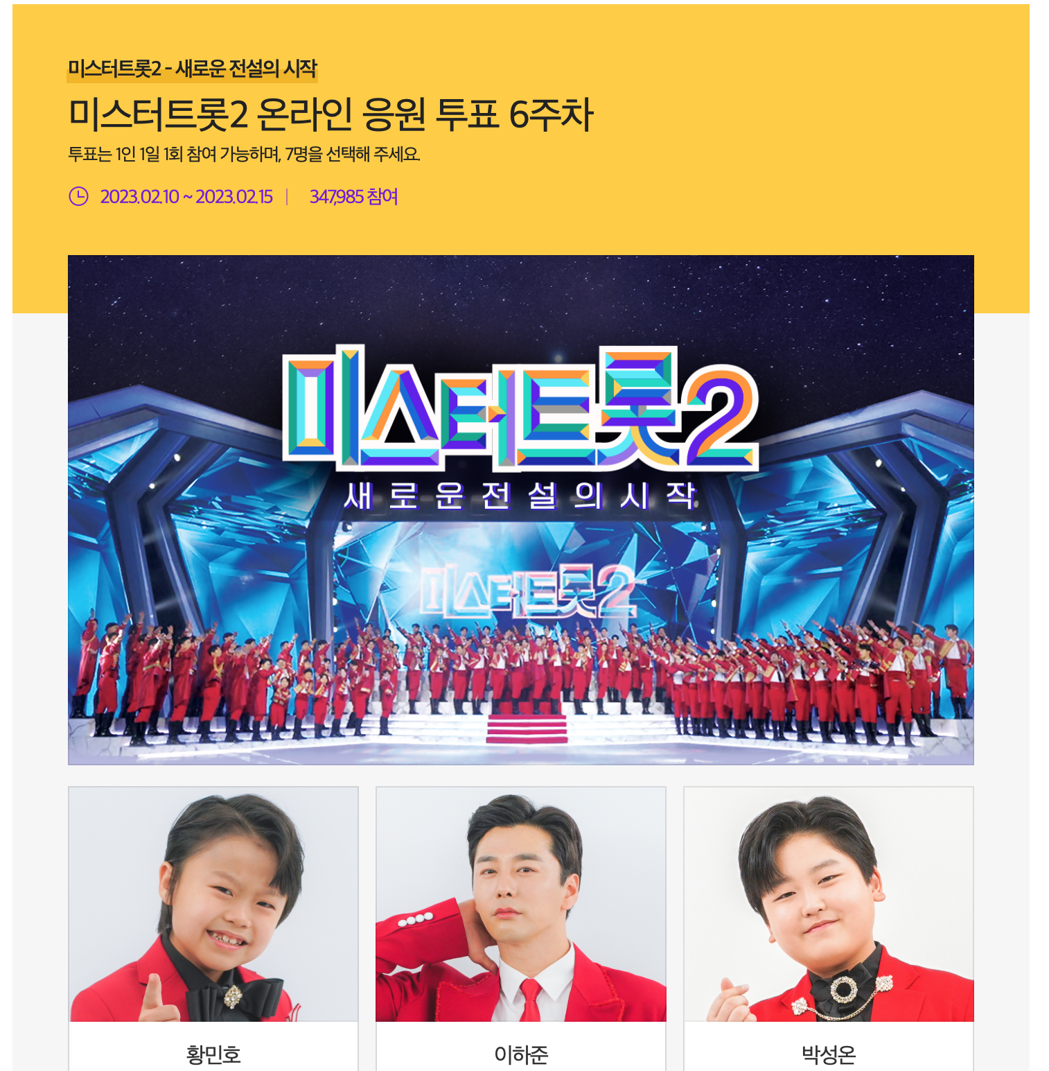 미스터트롯2 온라인 응원 투표 6주차
