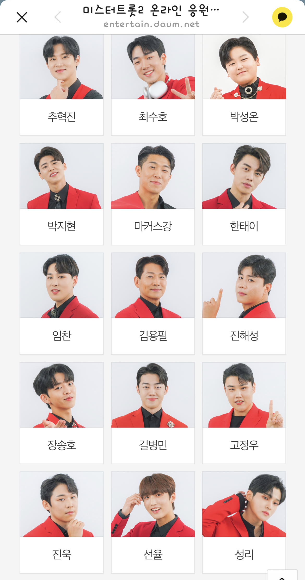 | 미스터 트롯2, 결선 진출자 25인 명단 온라인 투표 Top5는? (0) | 2023.02.09 |