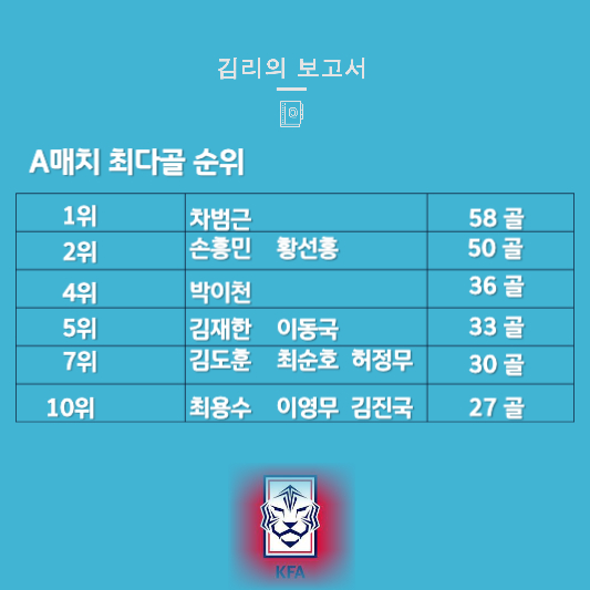 이상 손흥민 A매치 50골(데뷔골부터 월드컵 득점까지)과 국내 선수 중 A매치 최다골 순위 간단하게 알아 보았습니다. 감사합니다.