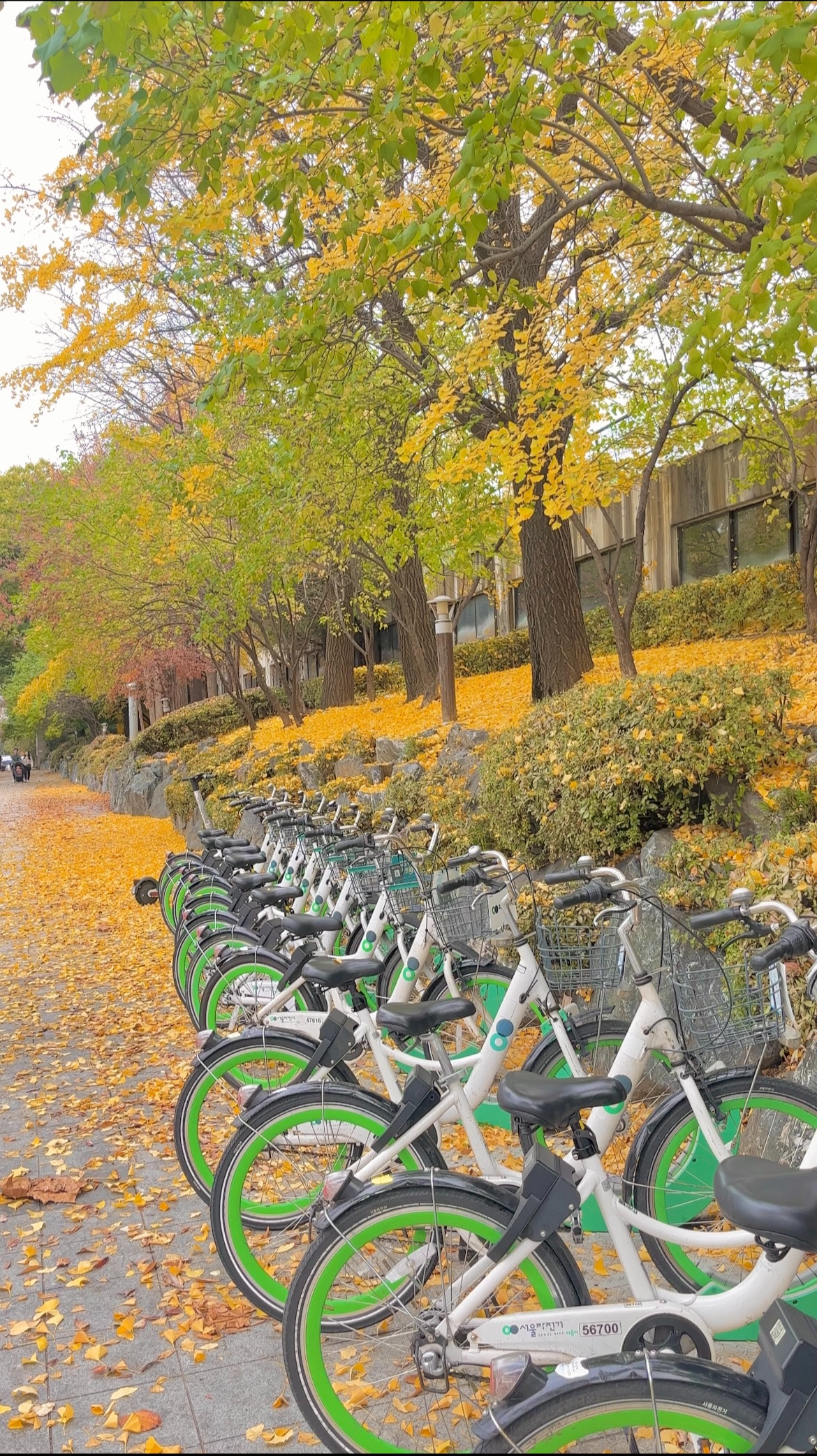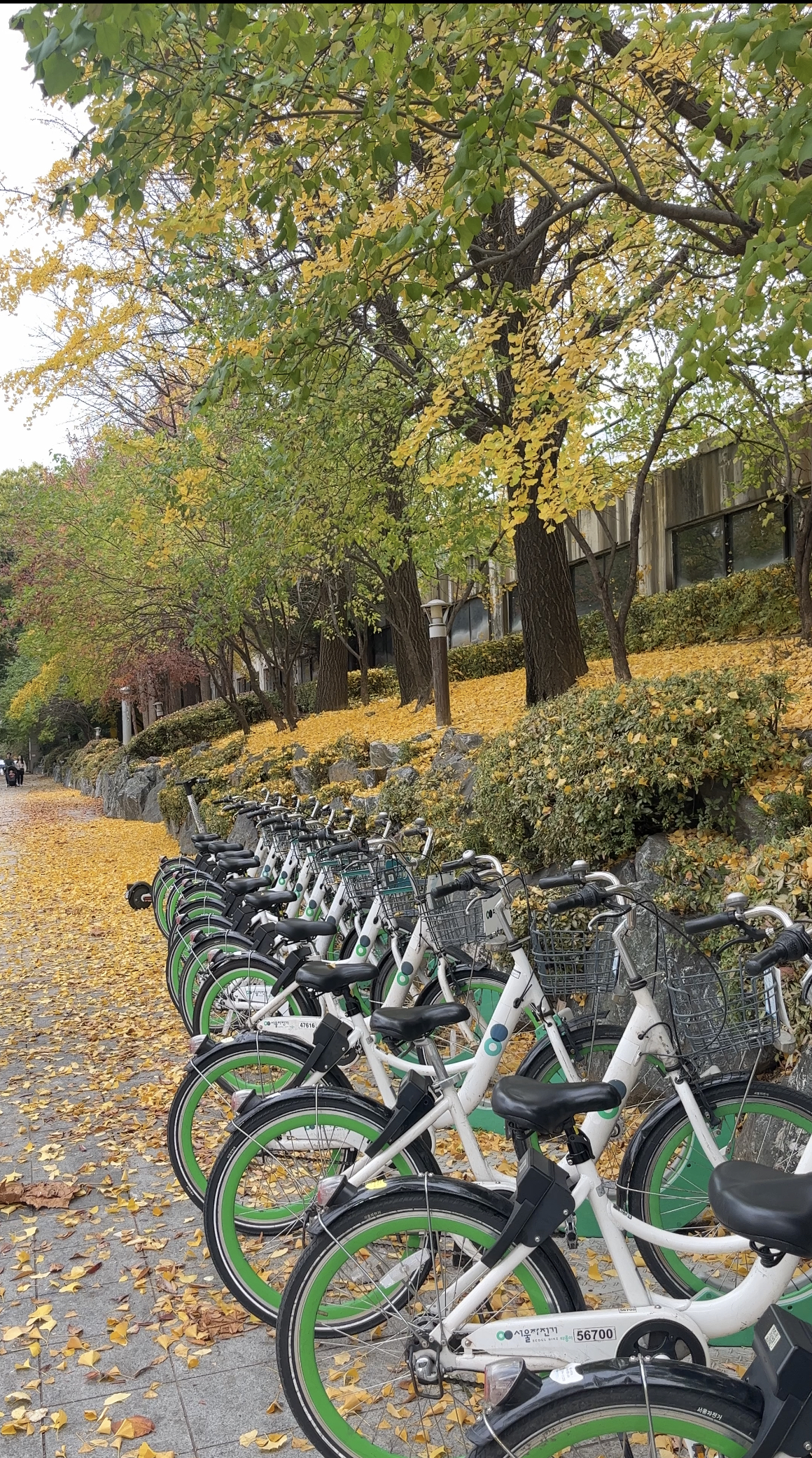 가을 어느 날, 출근길 저는 따릉이를 타기 전에 흩날리는 노랑 은행잎에 시선을 빼앗겨 그 순간을 사진으로 담았습니다.