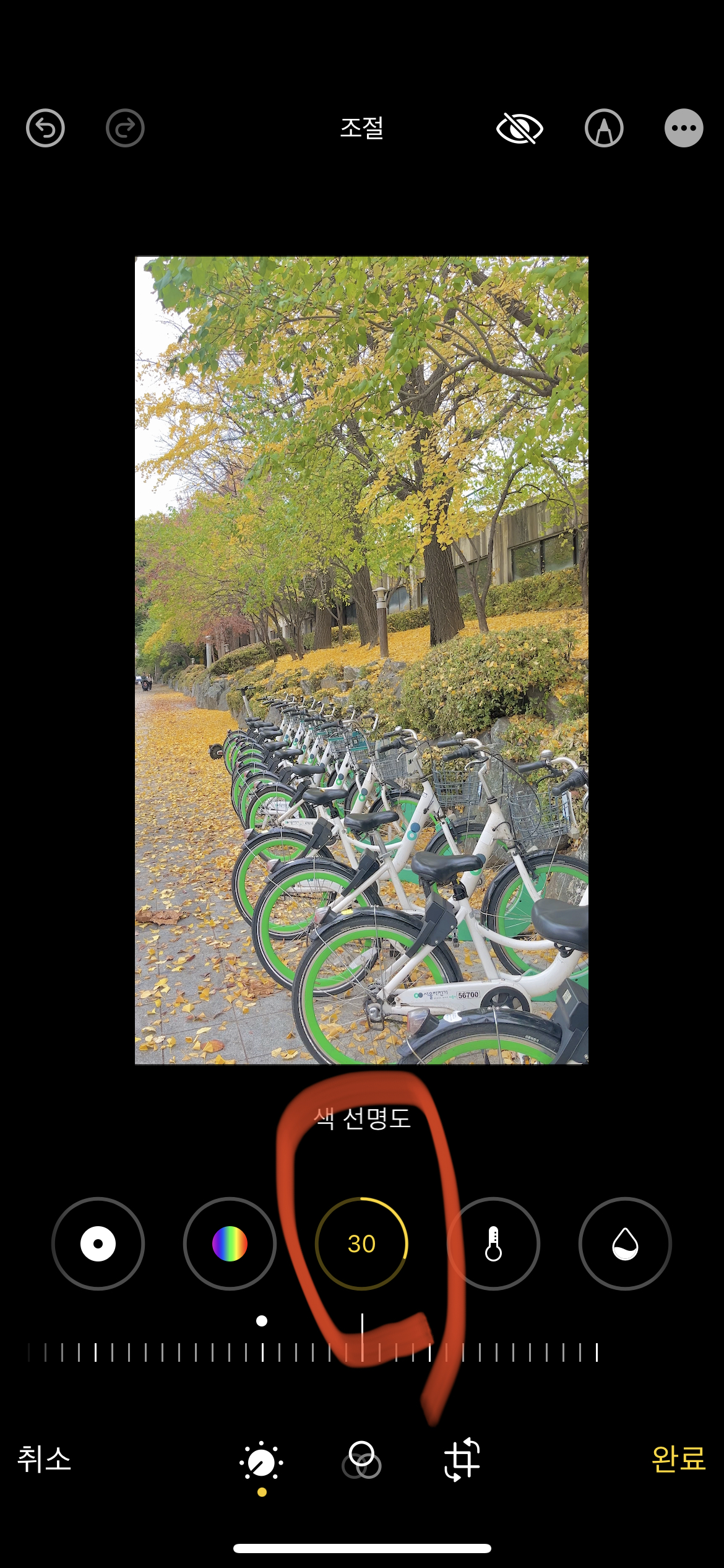 정리해보겠습니다. 아이폰으로 촬영한 가을 단풍 사진을 보다 아름답게 보관하시려면 편집 기본 기능으로 다음과 같이 조절해주시면 됩니다.
