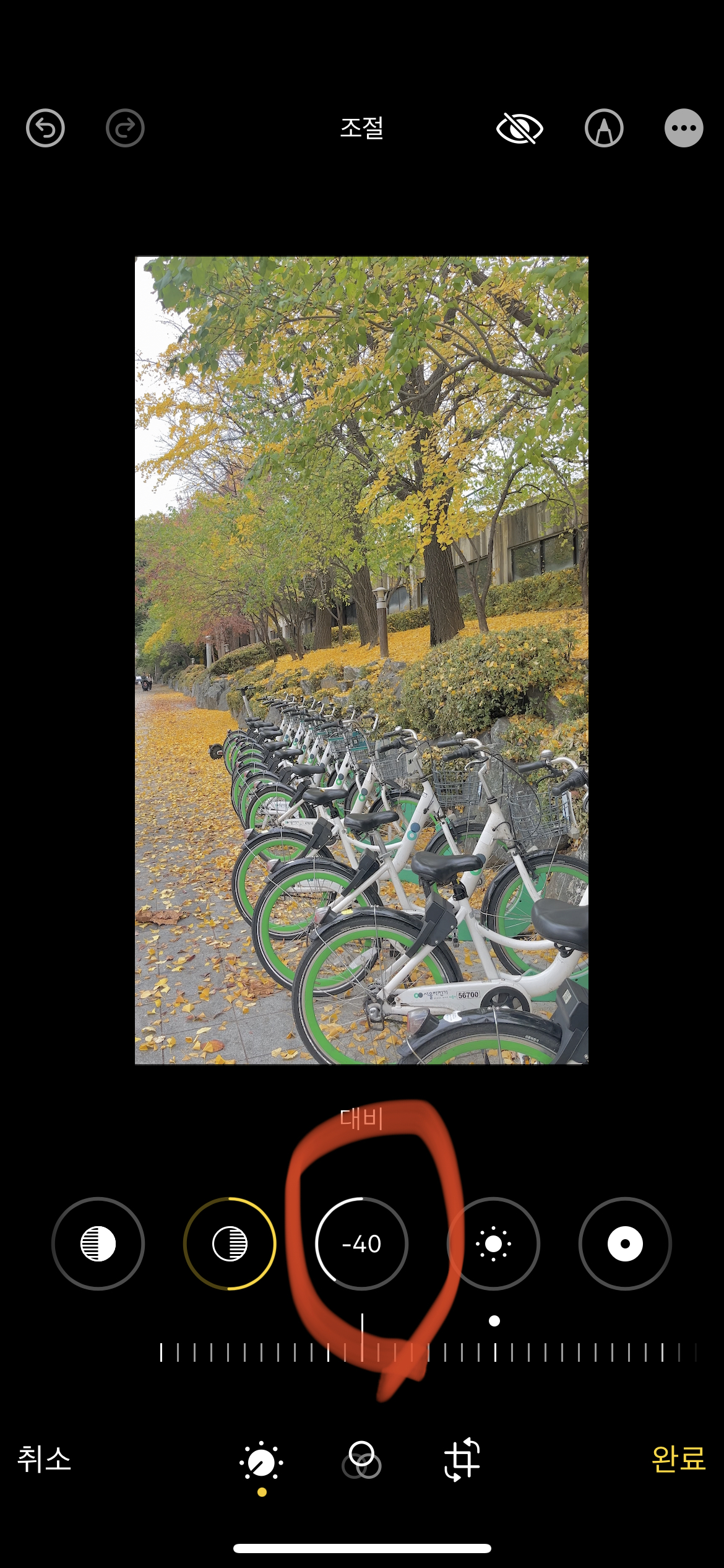 정리해보겠습니다. 아이폰으로 촬영한 가을 단풍 사진을 보다 아름답게 보관하시려면 편집 기본 기능으로 다음과 같이 조절해주시면 됩니다.