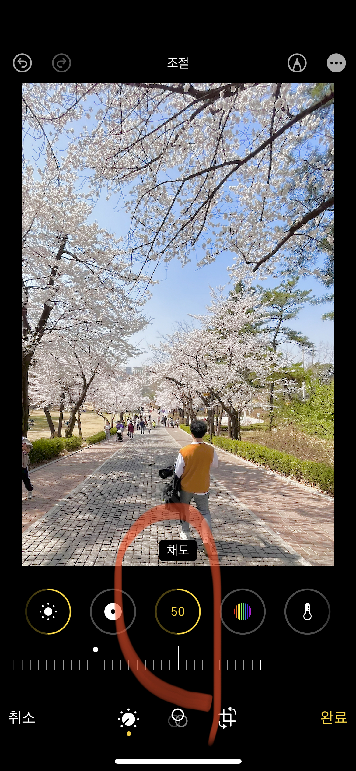그리고 채도를 +50으로 조절하여 전체적인 색감을 두드러지게 만듭니다.