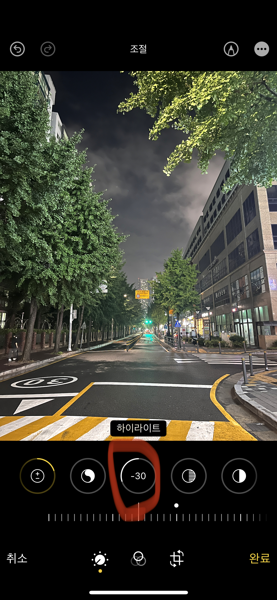 다음은 하이라이트, 하이라이트를 낮춰 사진 속 디테일을 조금 살려줄 생각입니다. 하이라이트는 -30입니다.