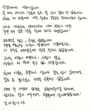 이승기가 직접 쓴 손편지로 이유비와 결혼을 발표했다.