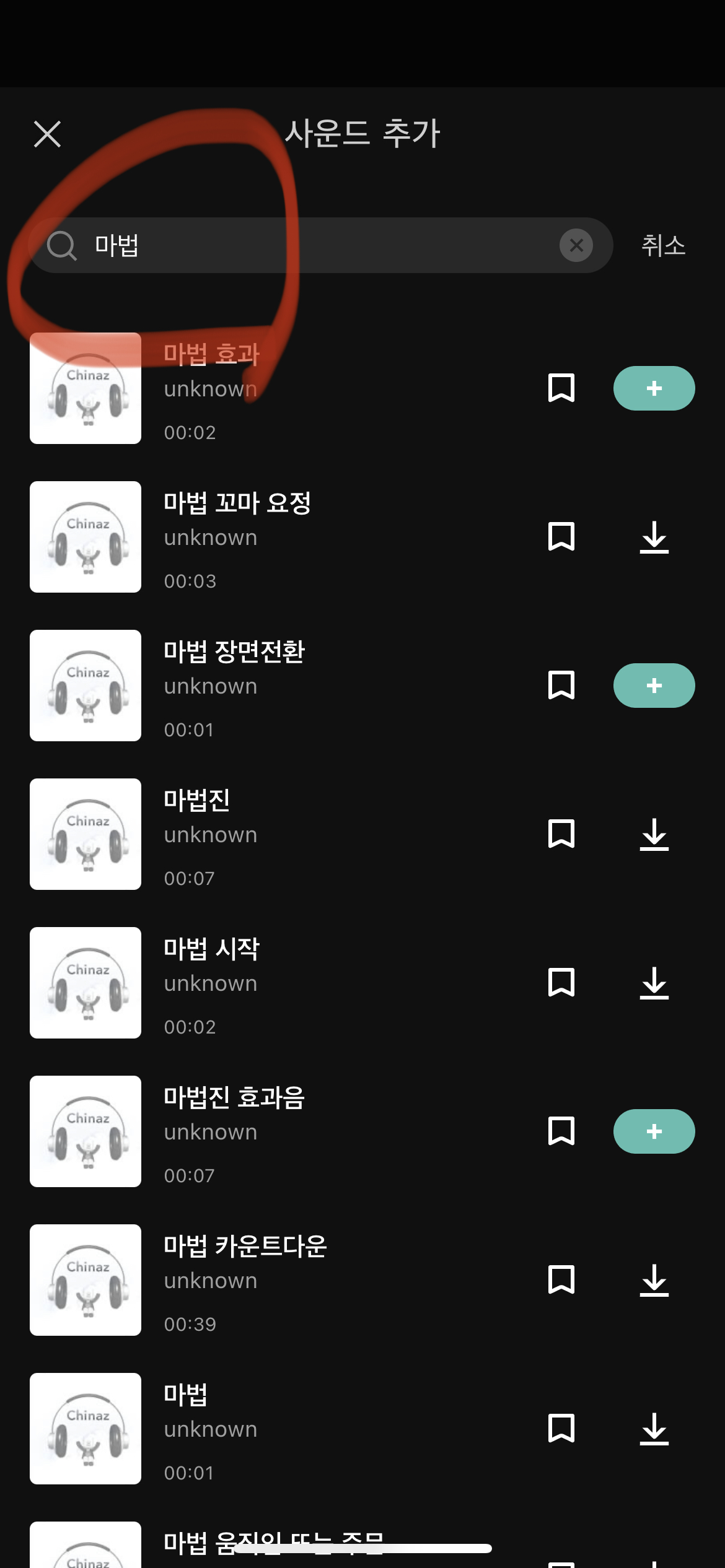 저는 '마법', '마술'을 검색해서 제 기준에 좀 더 어울릴 만한 '마술 소리'를 선택했습니다.