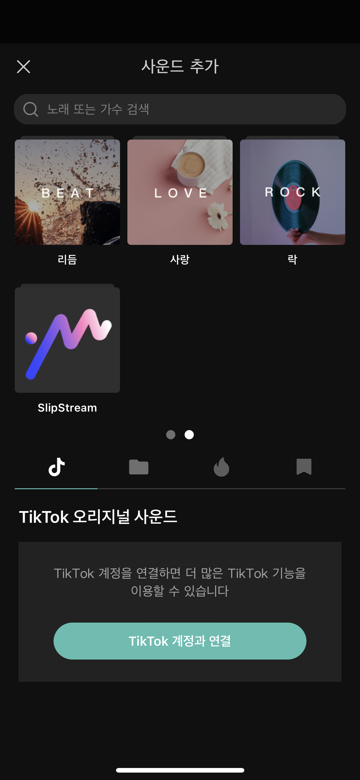 사운드 항목을 선택한 후 맨위의 노래 또는 가수 검색에서 원하는 효과음을 검색합니다.