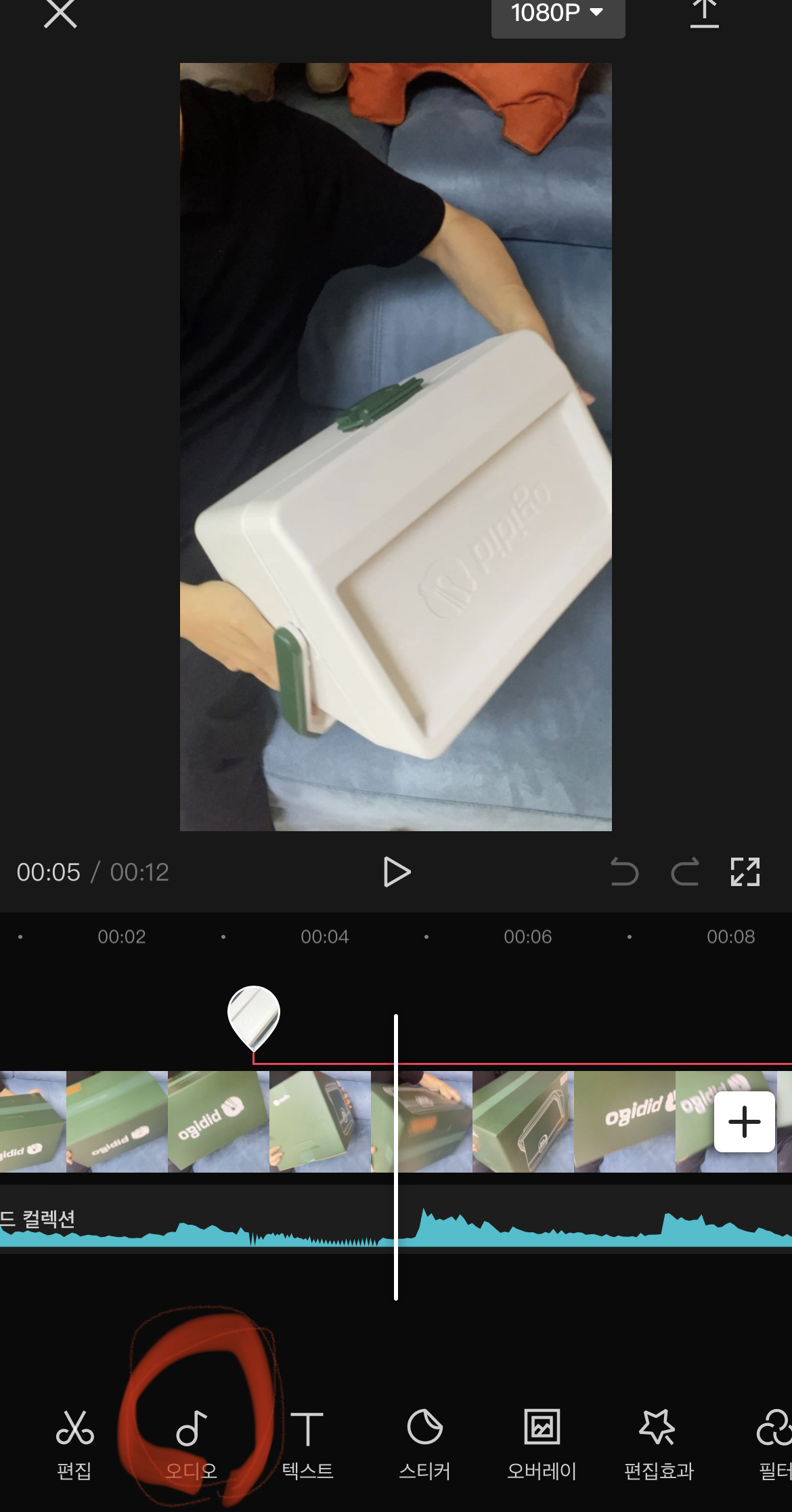 제품 영상의 첫 부분도 박스 영상의 끝부분과 자연스럽게 이어지도록 잘 맞춰줍니다.