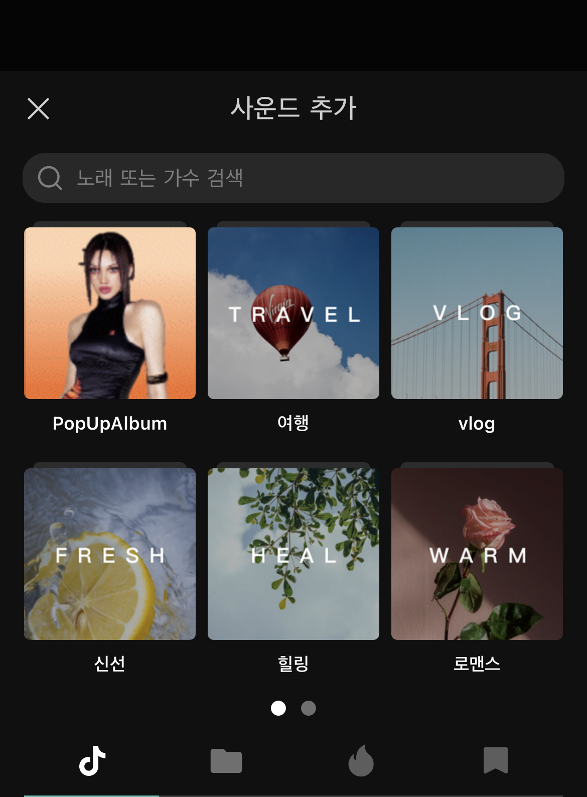 캡컷에서는 영상에 여러 음악들을 추가할 수 있습니다.