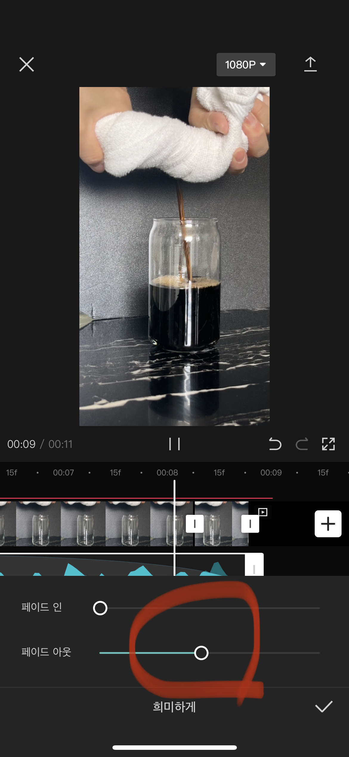 이 영상에서 중요한 것 중에 하나가 '수건 영상'과 '커피 영상' 길이가 비슷해야한다는 것입니다.