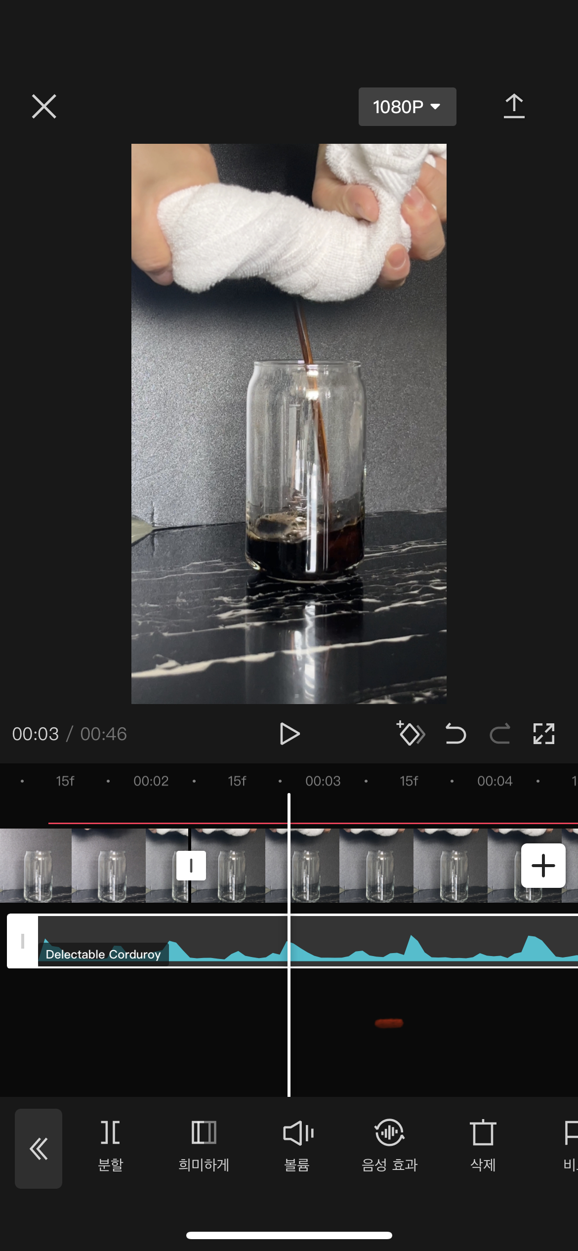 저는 실수로 수건 영상을 너무 짧게 찍었습니다. 그래서 저는 '프리즈' 기능을 활용했습니다.