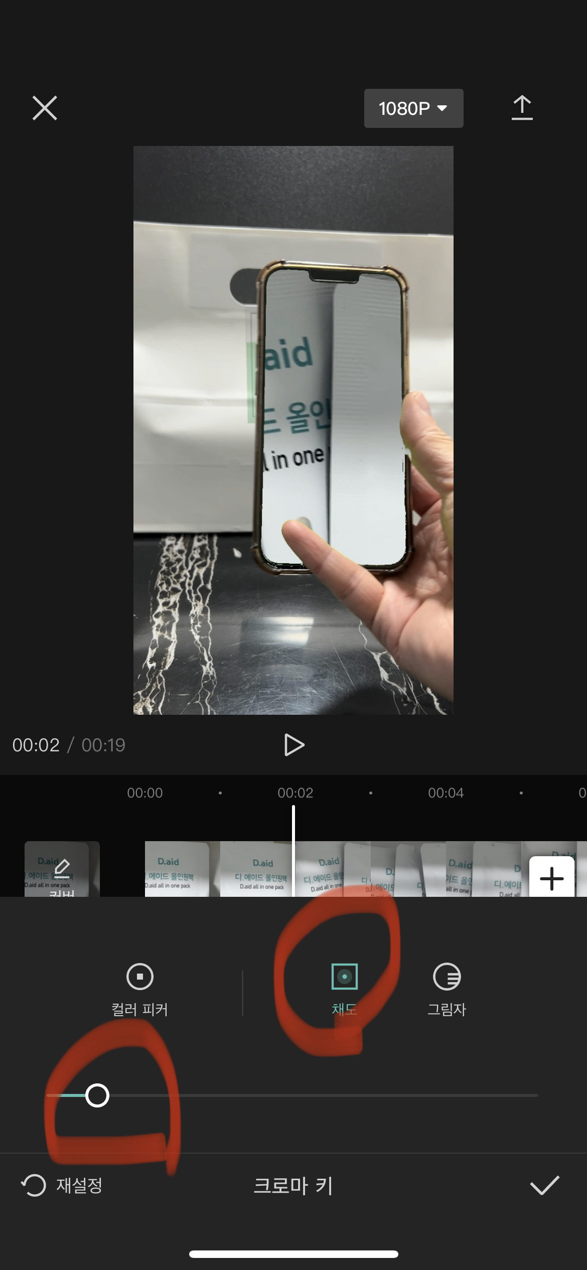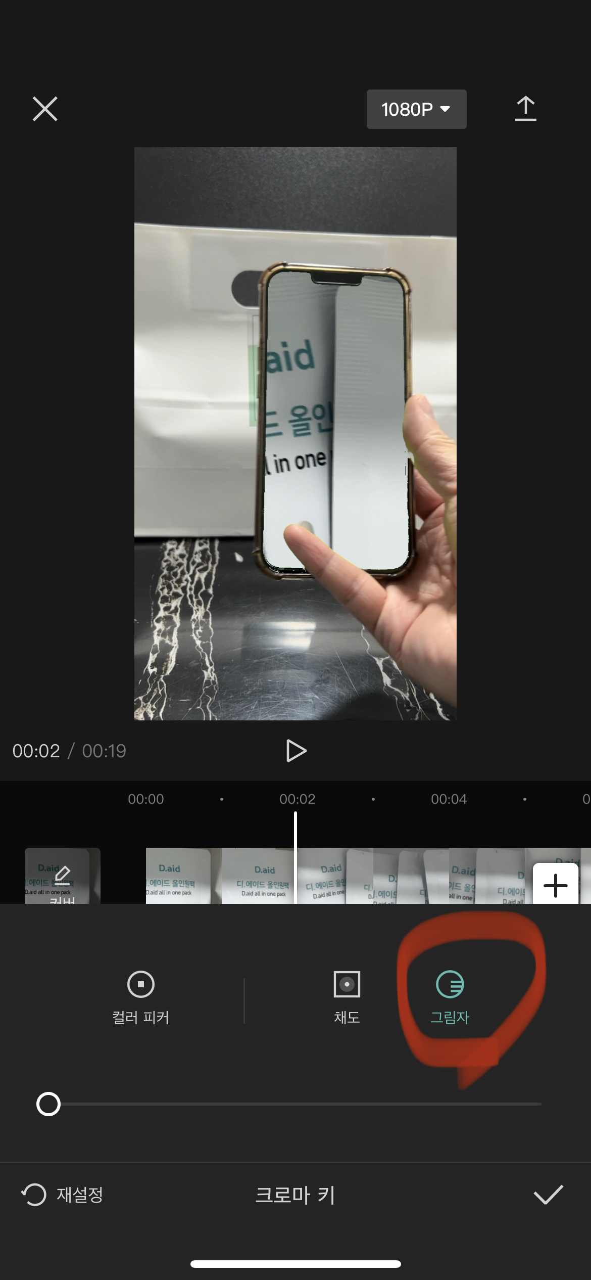 이때 촬영하는 휴대폰 화면에 그린스크린이 나오도록 촬영해야 합니다.