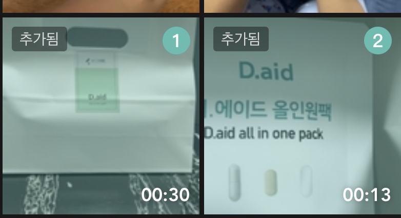 아래 타임라인 왼쪽이 내용물 영상, 오른쪽이 박스 밖을 휴대폰으로 찍는 영상입니다.