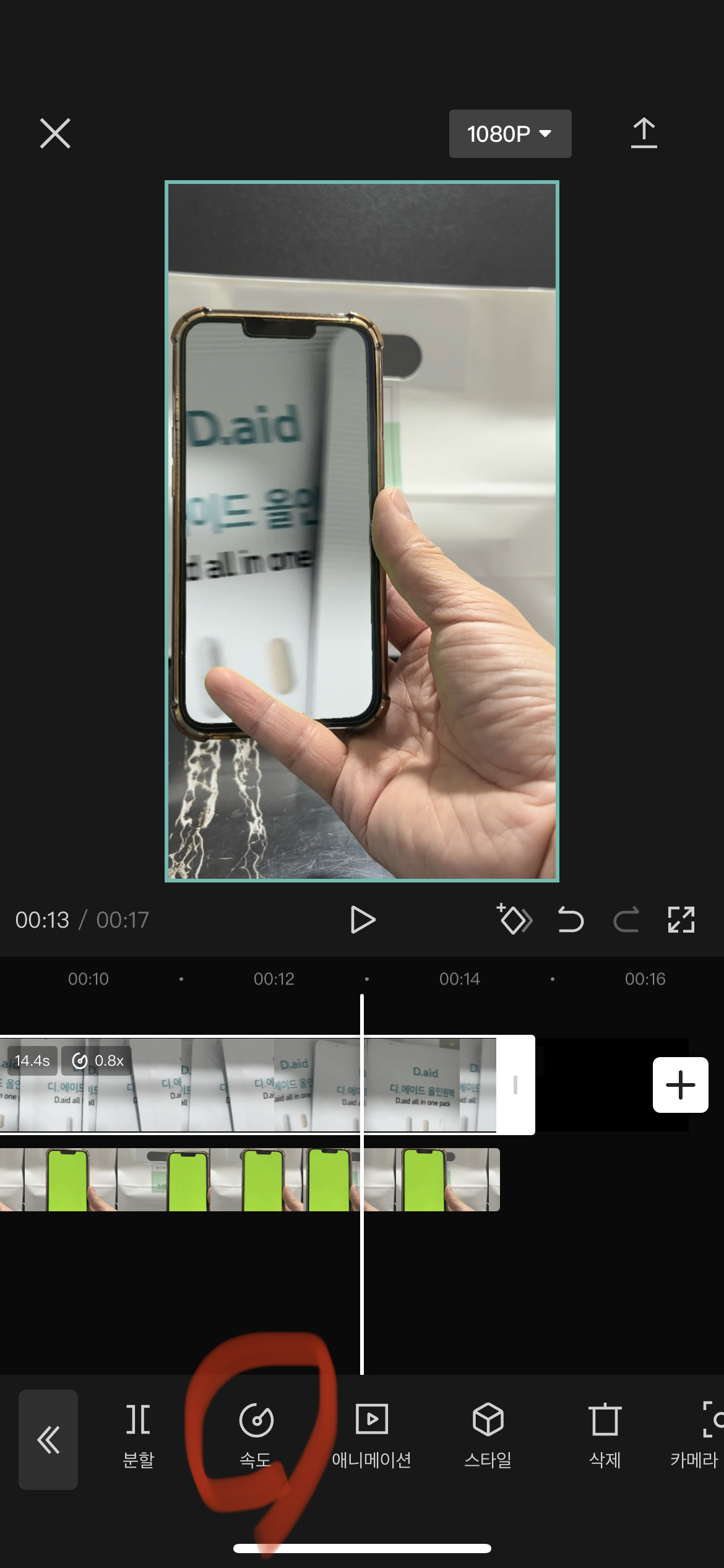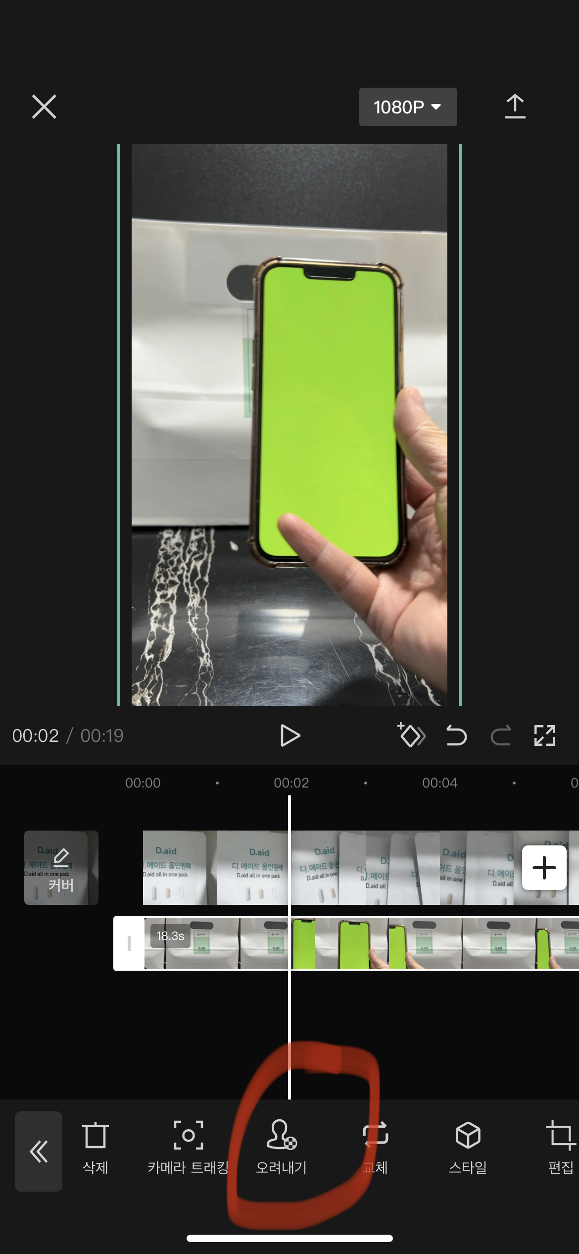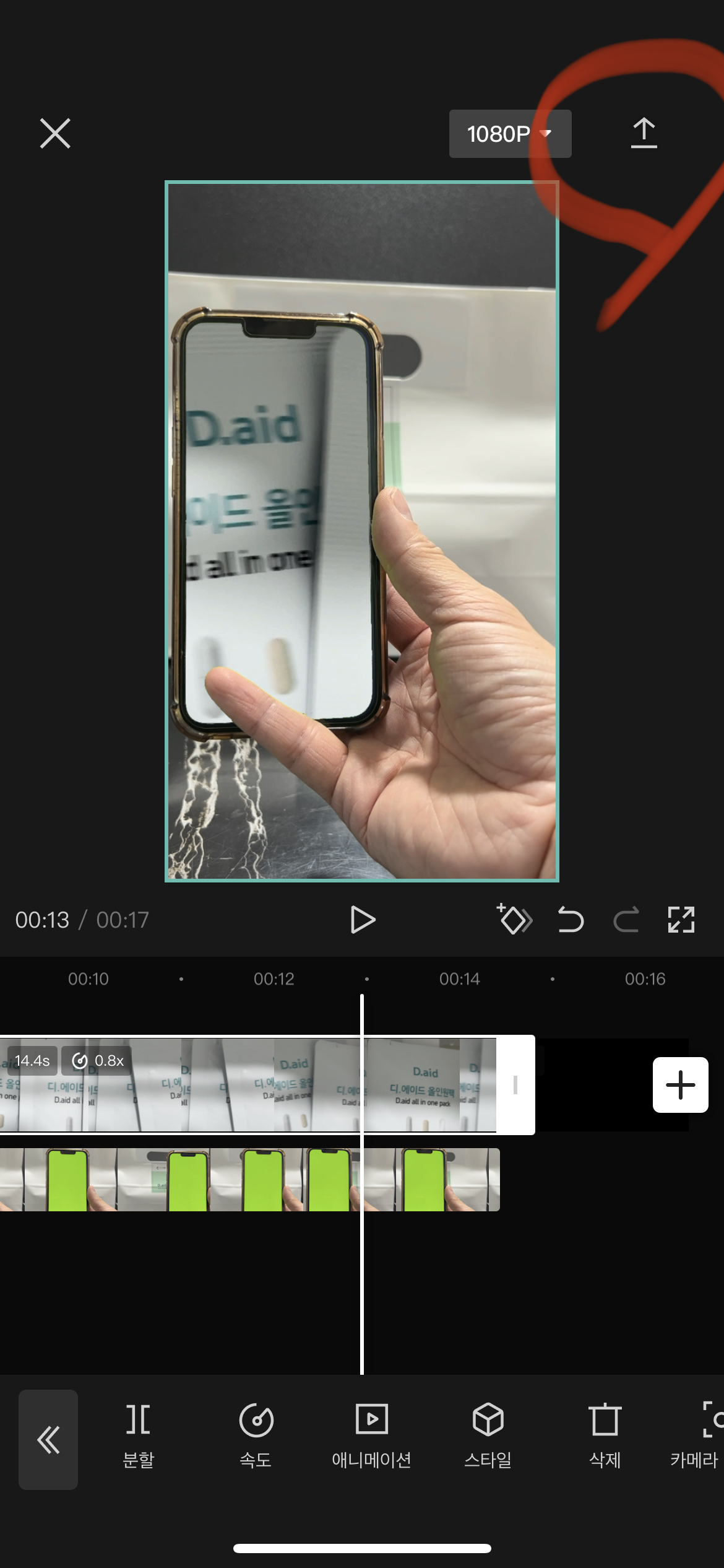 이때 촬영하는 휴대폰 화면에 그린스크린이 나오도록 촬영해야 합니다.