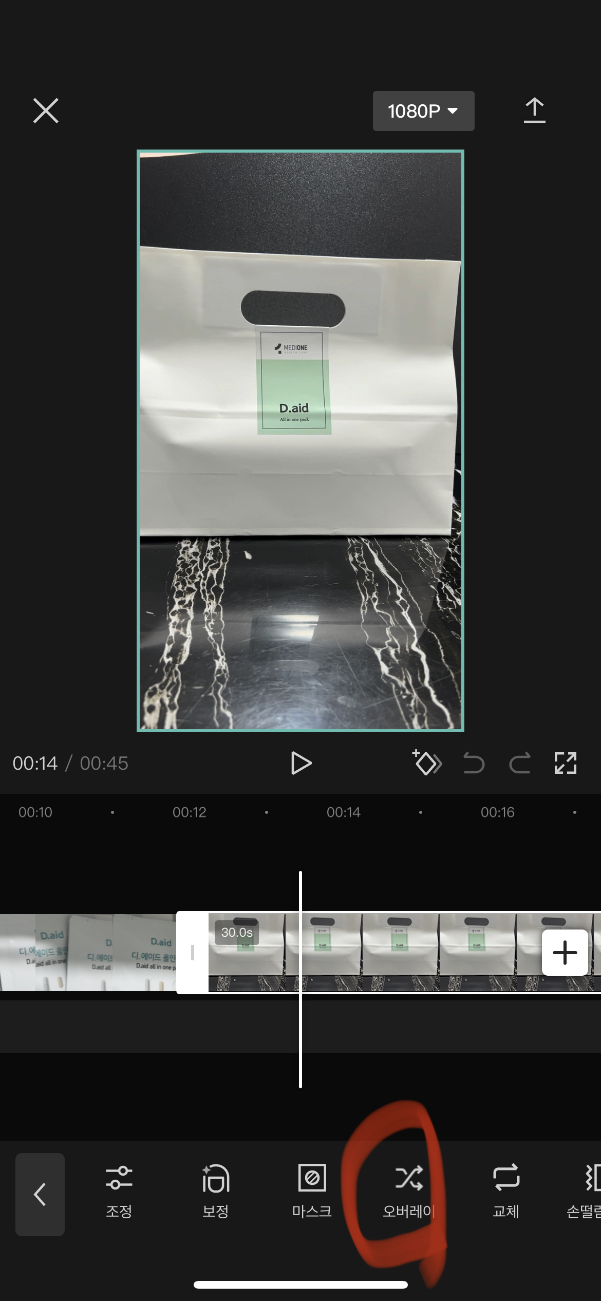 오버레이를 터치해줍니다. 이제 오른쪽 영상과 왼쪽 영상 파일이 겹쳐지고