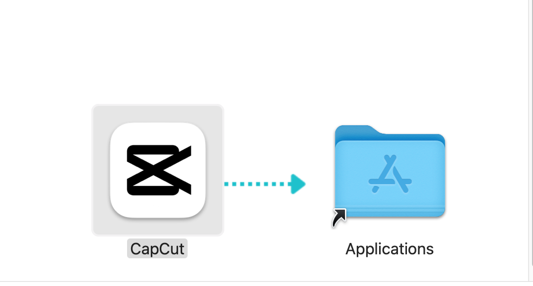 그러면 왼쪽 캡컷 아이콘을 오른쪽 폴더에 화살표 방향대로 드래그 하면 설치 과정이 이어집니다