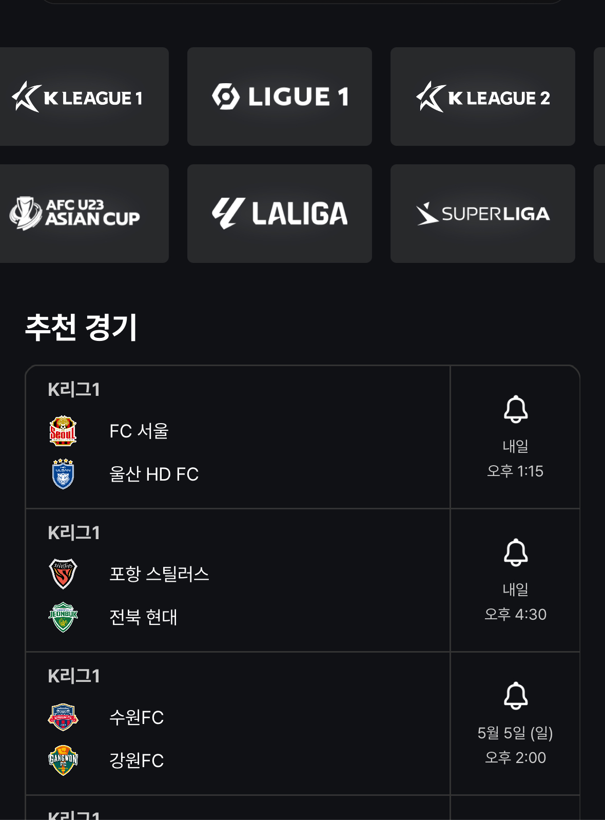 마지막으로 쿠팡플레이에서 놓치면 안 되는 것이 바로 스포츠 콘텐츠입니다. K리그1과 2를 비롯하여 프랑스 스페인리그의 주요 경기를 쿠팡플레이로 볼 수 있습니다. 나아가 2025-2026 시즌부터는 세계에서 가장 인기 있는 EPL도 쿠팡플레이에서 만날 수 있다고 하니 쿠팡플레이 계속 구독해야겠습니다.