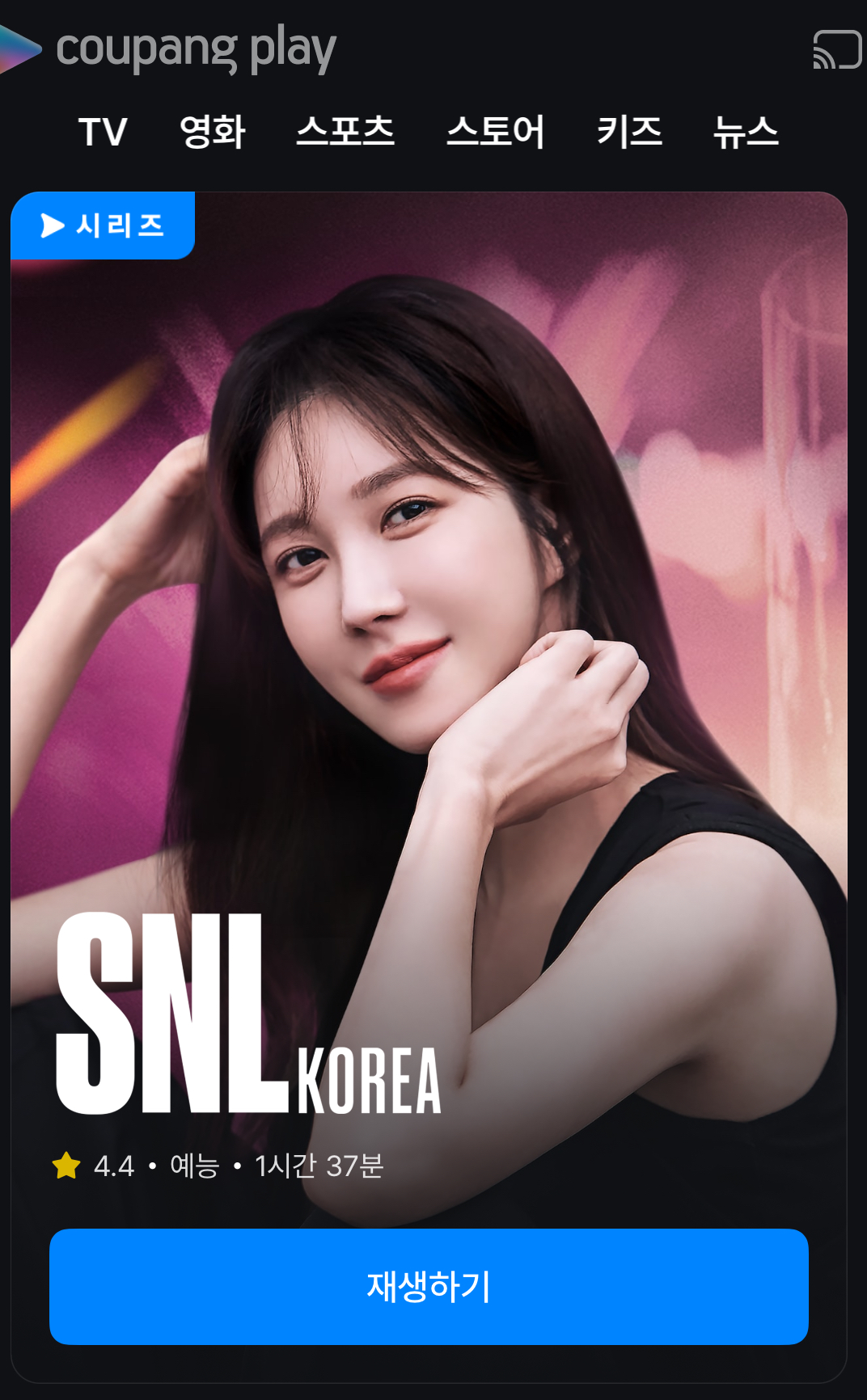 우선 쿠팡플레이 시작부터 단독으로 제공되고 있는 TV쇼 'SNL 코리아'가 있습니다. 미국의 전통 라이브 코미디 쇼인 SNL의 라이센스를 정식으로 가져온 국내 TV쇼인데요 매주 화제가 될만한 게스트들과 호스트들이 보이는 라이브 코미디 쇼입니다.