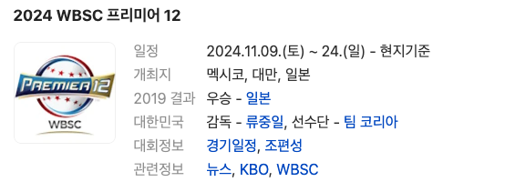 2024년 한 해를 뜨겁게 달궜던 KBO가 기아타이거즈의 우승으로 막을 내렸습니다. 그러나 2024년 한국 야구는 아직 끝나지 않았습니다. 2015년 초대 대회에서 우리가 우승을 차지했던 프리미어12가 남았습니다. 이번 포스팅에서는 프리미어12 일정과 중계 정보 간단하게 정리해 드리겠습니다.