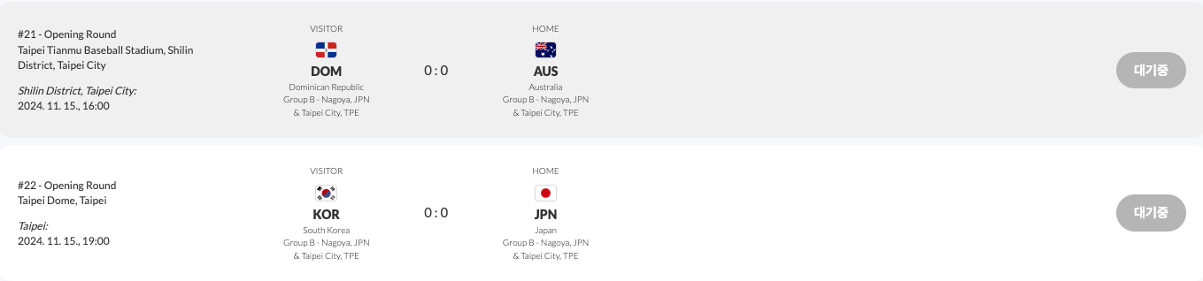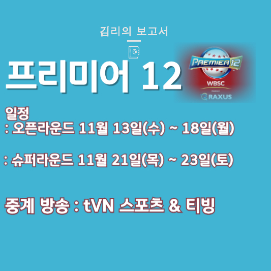 프리미어12를 통해 올 한 해 뜨거웠던 야구 열기가 국내 경기뿐만 아니라 국제 경기에서도 이어질지 기대됩니다. 이상 프리미어12 일정 및 중계 정보 정리해 드렸습니다. 감사합니다.