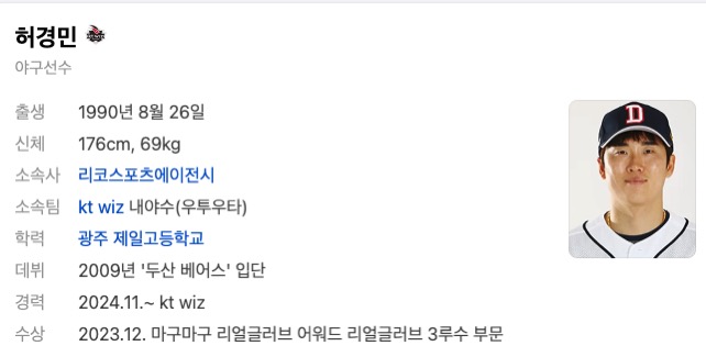 허경민 선수가 KT위즈에서 어떤 활약을 펼칠지 기대히면서 이상 허경민 FA계약 허경민 통산기록 정리 마치겠습니다 감사합니다