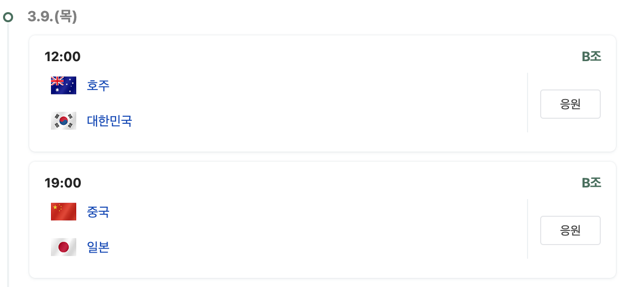 3. 대표팀 경기 일정 / 중계 보기