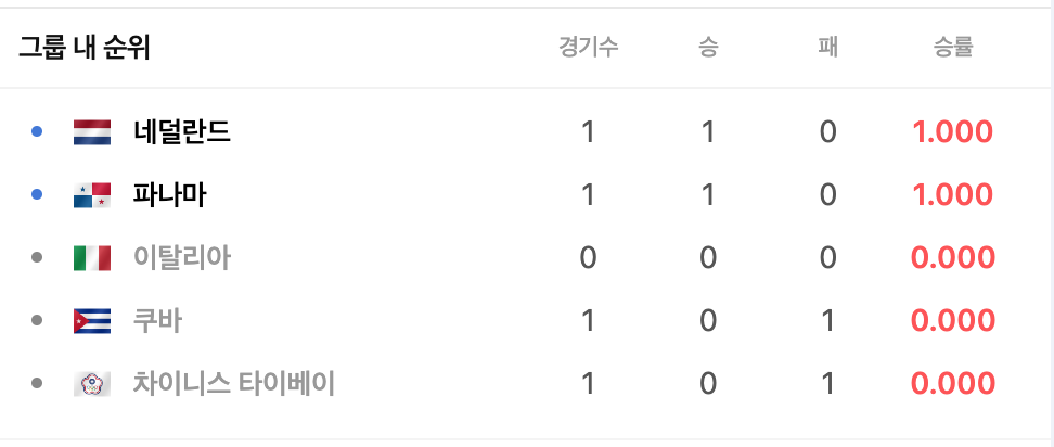 유럽의 강호로 지난 두 대회에서 연속 4강에 오른 저력의 팀 네덜란드가 이번 대회 아마 최강의 명예를 회복하기 위해 나선 쿠바를 물리치고 먼저 1승을 거둬 8강 진출에 유리한 고지를 점령했습니다. 네덜란드는 A조 1위로 8강 진출할 것이 유력한 팀으로 우리 대표팀이 B조 2위로 8강에 진출한다면 만날 수 있는 팀입니다.