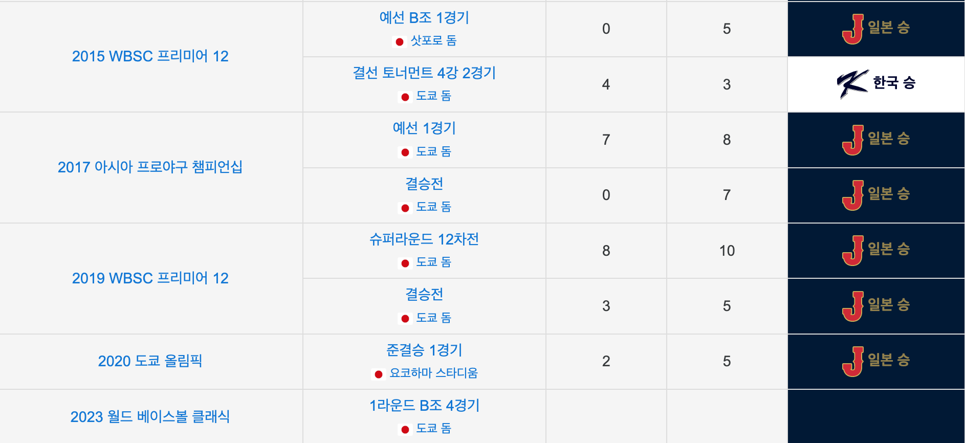 2. 역대 한일전 전적 / 프리미어12 결승전 하이라이트