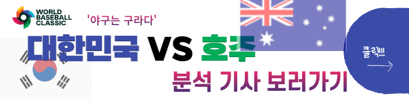 지난 두 대회 모두 1차전 패배 후 1라운드에서 탈락했던 대표팀은 그 어느 때보다 호주와의 1차전의 중요성을 알고 있었습니다. 경기 전에는 상대를 얕잡아 보지 않고 총력전을 다하겠다고도 했습니다. 그러나 결과는 충격적이었습니다. 홈런 세 방을 얻어 맞은 투수진. 찬스를 못 살린 공격진, 어이 없는 실수까지 야구팬들의 마음에 고구마를 잔뜩 쌓은 경기였습니다.