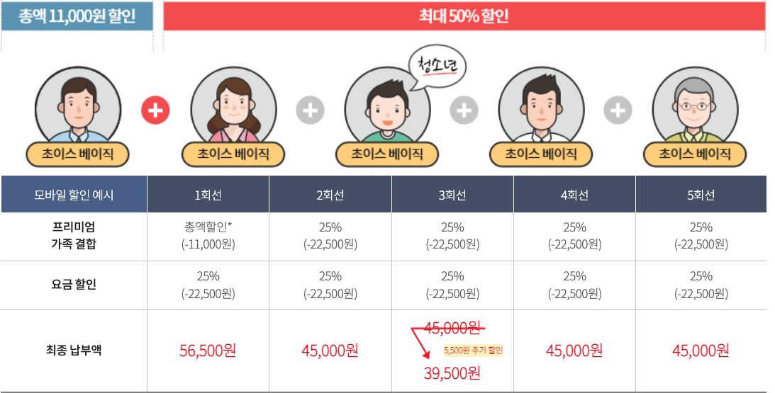 5인 가족 기준으로 결합 및 요금 할인 등을 중복으로 받아