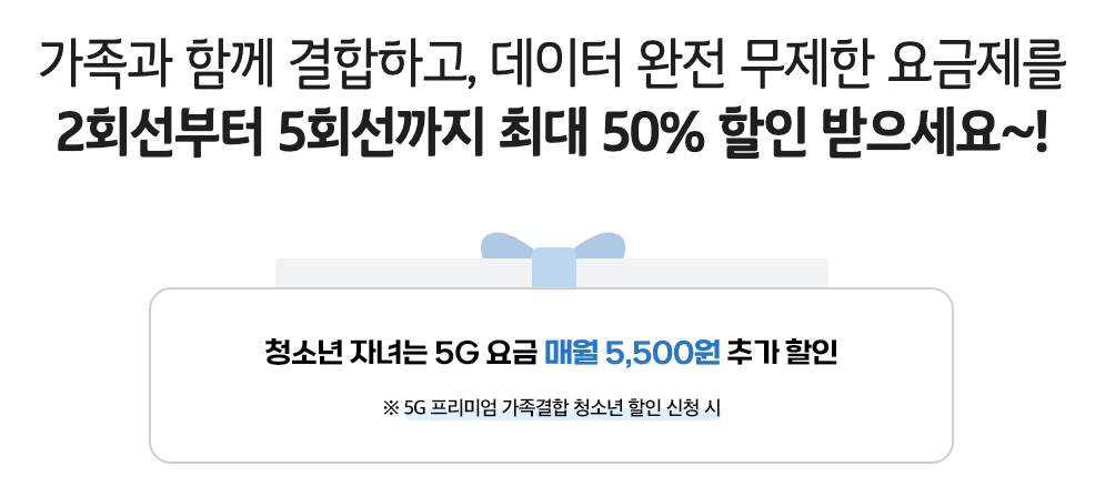 자녀들이 자라고 가족 구성원들마다 휴대폰 하나씩 쓰게되면 인터넷에 전화 요금에 가족 통신비 부담도 어마어마합니다. 그럴 때 조금이라도 할인 받는 것이 도움이 될텐데요 인터넷은 물론 휴