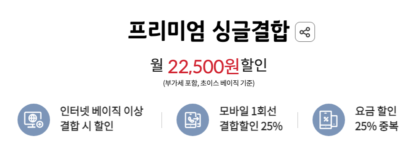 결합 및 요금 할인으로 최소 월 22,500원 절약하실 수 있습니다.