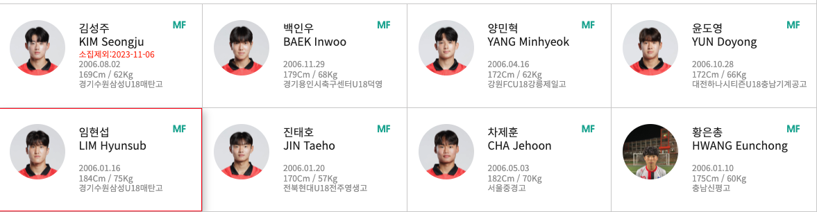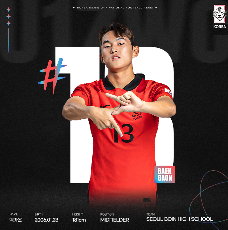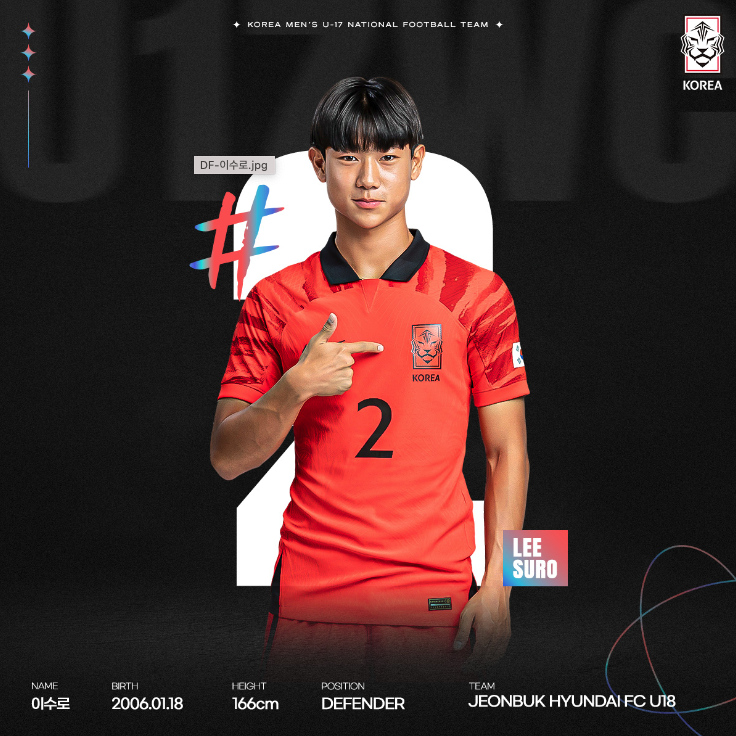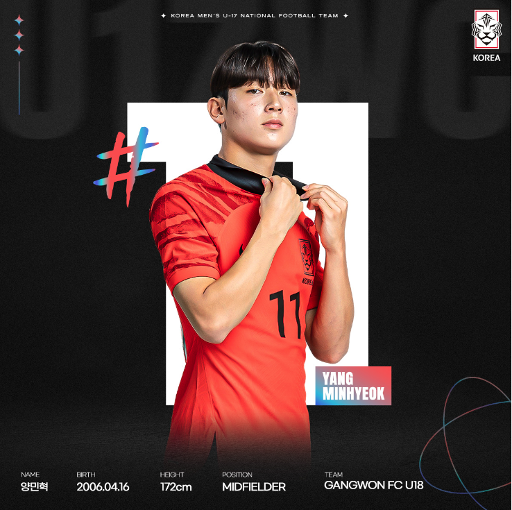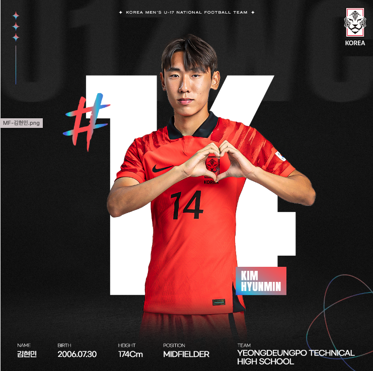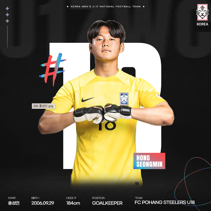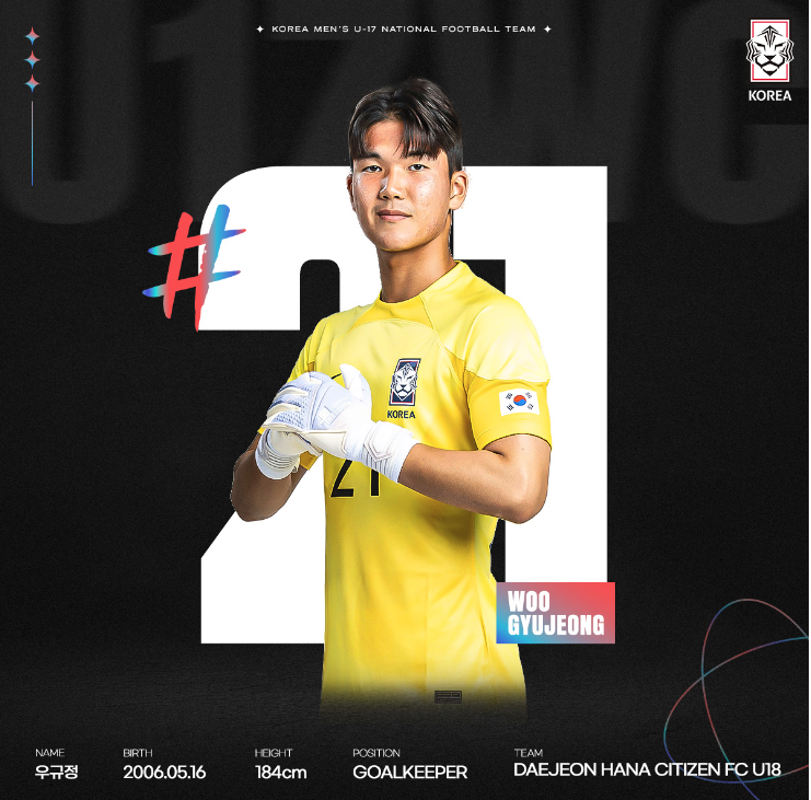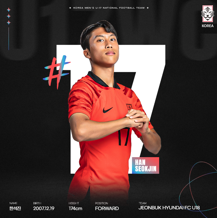 이번 대회 출전하는 우리 대표팀은 모두 21명으로 구성되었습니다. 이 중에 16명이 지난 U-17 아시안컵 준우승 멤버고 나머지 다섯 명은 이번 대회를 앞두고 새롭게 발탁되었습니다. 대부분 2006년생으로 구성되었고 한석진(전북 유스) 선수만 유일하게 2007년생입니다.