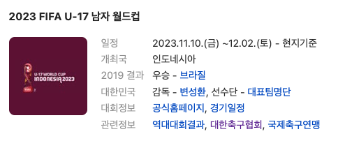 이상 2023 U-17 월드컵 대표팀 경기 일정, 대표팀 명단, 중계방송 보는 법까지 알려 드렸습니다. 대한민국 U-17 대표팀의 선전을 기원합니다.