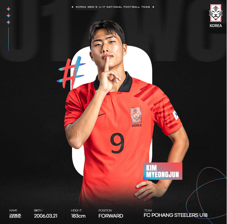 공격진에는 포항 유스의 김명준 선수를 주목할 만합니다. 그리고 이번에 새로 발탁된 막내 한석진(전북 유스) 선수도 기대가 됩니다. 그 밖에 김현민, 백가온, 이수로 선수 등도 공격진에서 언제든지 활약할 준비가 되어 있습니다.