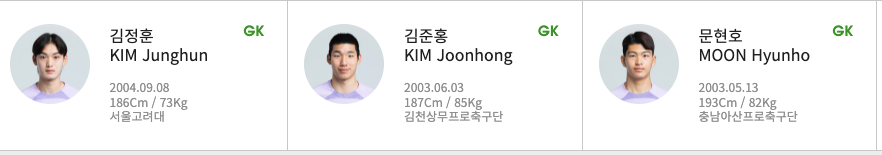 골키퍼는 안정감 있는 선방을 보이는 김준홍 선수가 있습니다.