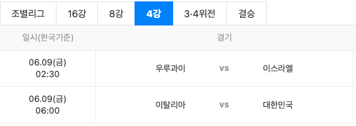이탈리아와 4강에서 한국 선수들의 선전을 기대하며 포스팅 마치겠습니다.